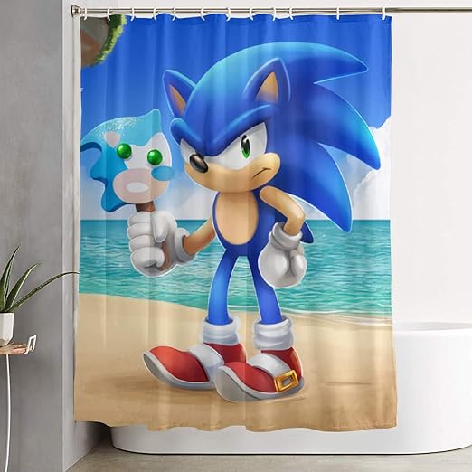 Sonic The Hedgehog 02 Design Polyester Fabric Bath Shower Curtain