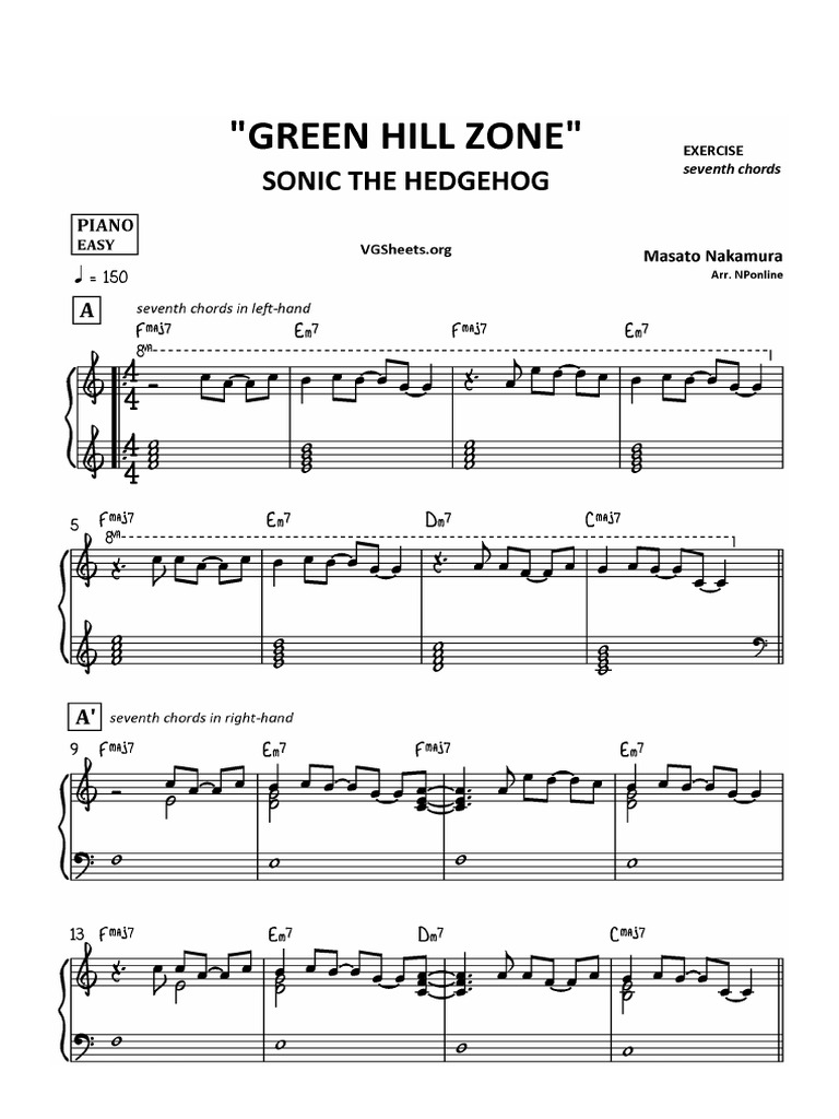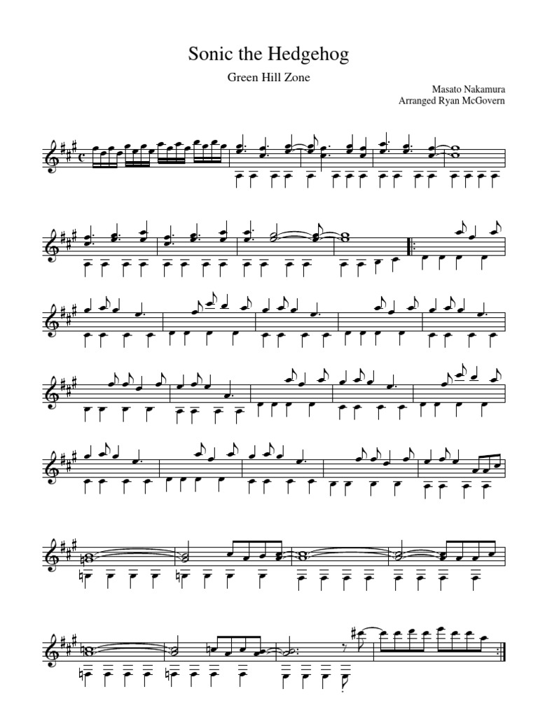 Green Hill Zone Sonic Sheet Music For Piano Violin Drum Group