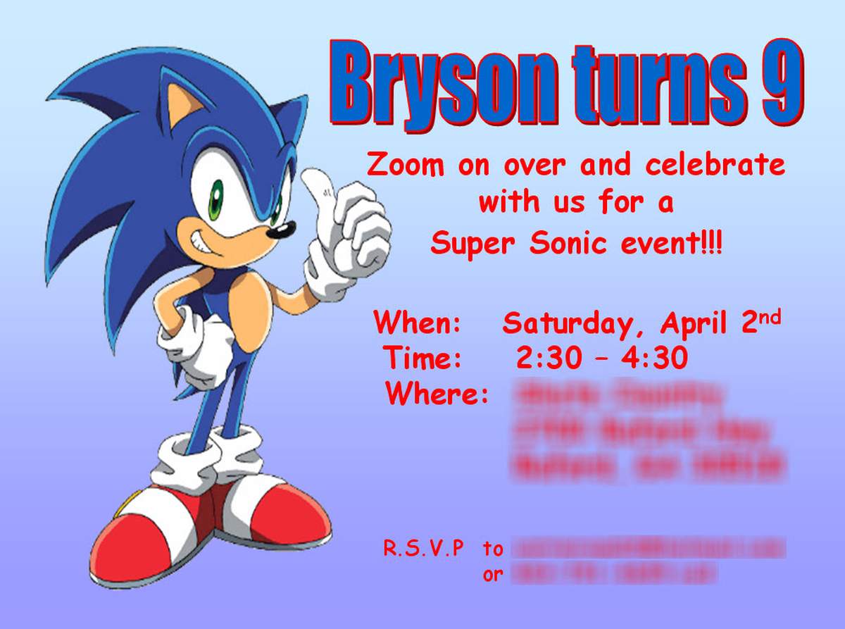 Personalised Sonic The Hedgehog Invitations