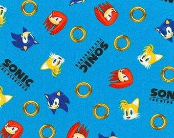 Blue Face Toss Sonic The Hedgehog Robert Kaufman Cotton 1 2
