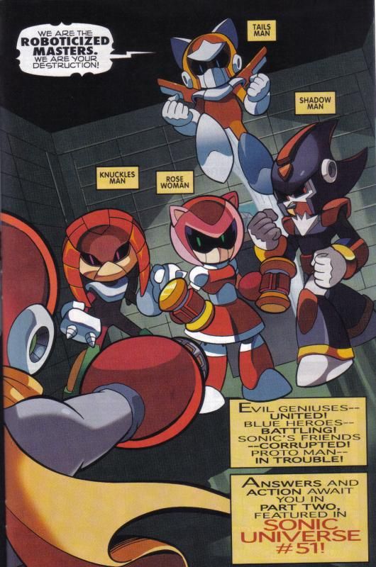 In the come join the eggman empire. The roboticized masters are a group that appears in the sonic the hedgehog comic series and its spin offs and the mega man comic series published by archie comics. The roboticization process is based on the sonic the hedgehog video game series concept of roboticization where an animal is forcibly stored inside a robot shell and is used as its respective power supply.