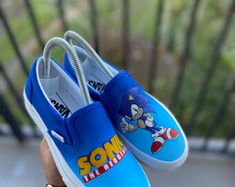 Custom Sonic The Hedgehog Kids Vans Slip On Shoes Vans Slip On